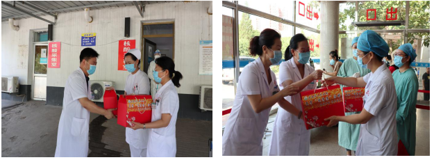 7月23日上午,带着对全院职工的牵挂,院党委书记周兆海、党委副书记崔莲、工会主席赵萍带领工会、党政办、宣传科的工作人员深入核酸采集点、门诊预检分诊、新冠疫苗接种点、急诊预检分诊等区域,慰问奋战在抗疫第一条防线上的职工,送上防暑降温物品,对他们不畏高温酷暑坚守岗位表示衷心地感谢,同时叮嘱大家在紧张工作的同时,要特别注意做好防暑降温工作,平安度夏。