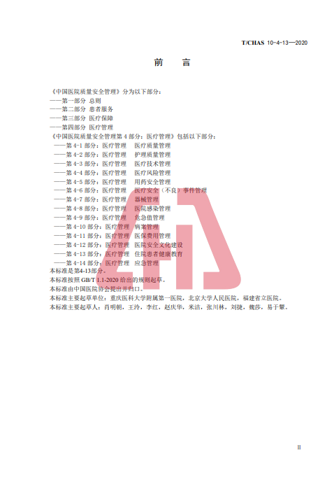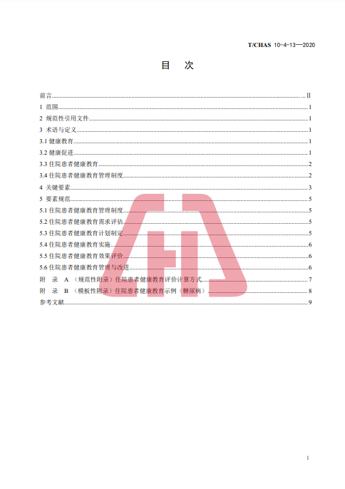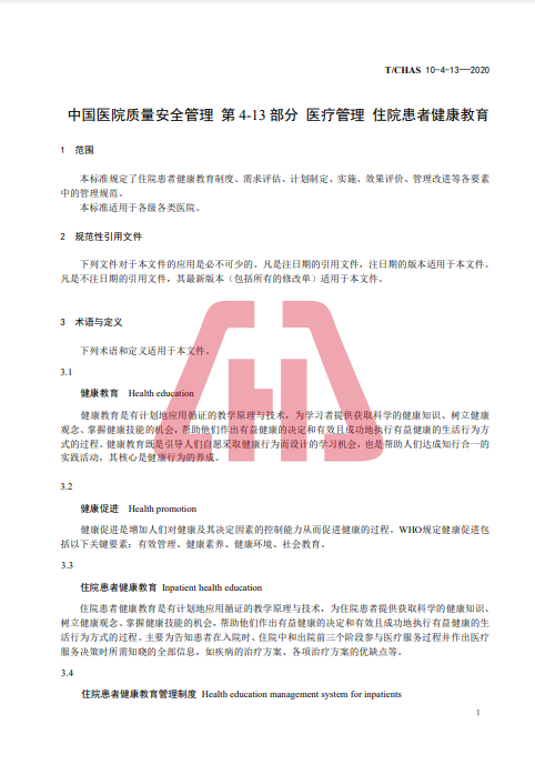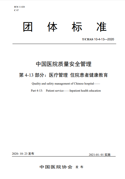 中国医院质量安全管理团体标准——医疗管理 住院患者健康教育