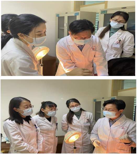 在妇产科病房,刘建华教授针对典型住院患者病历开展了对妇产科年轻医生大夫的现场教学,结合患者临床表现和影像、检验检查结果,刘建华教授认真细致的同在场医生分析病因,找出病灶,毫不吝啬的将自己的知识传授给现场医务人员,指导院内年轻医生学习成长,帮助他们积累临床经验。