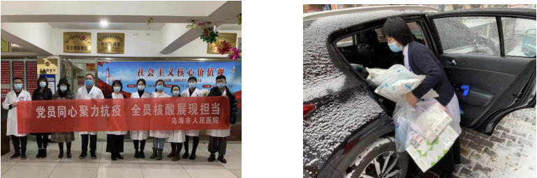 今年以来,乌海市人民医院医技党支部围绕中心,服务大局,引导广大党员主动担当作为,立足岗位做细做实疫情常态化防控工作。多次组织全体党员、积极分子利用上下夜班休息时间、节假日、双休日深入到疫情防控的各个环节,为疫情联防联控贡献力量。3月-4月在院内开展疫情防控党员志愿者服务岗工作,合理为门诊分诊分流、有序疏散患者,防止交叉感染风险。6-8月积极进社区入户宣传动员群众疫苗接种工作,并多次随我院疫苗接种流动队进入社区,参与到疫苗接种的各个工作环节中。近期,由于核酸采集量猛增,志愿者们主动到医院核酸采集区答疑解惑、维护秩序。