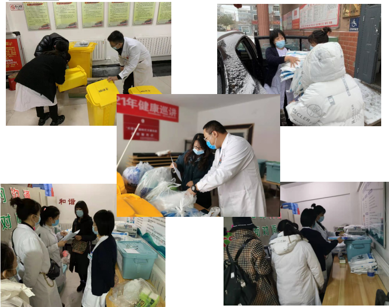 医技党支部党员和入党积极分子利用周六休息时间,在风雪交加的天气里逆行,来到佳苑社区开展包联共建活动,指导全员核酸检测准备工作,为居家苑、天鸿瑞园、钻北小区及时运送核酸采集物资,帮助社区工作人员整理、归纳、配备核酸采集必需用品及物资材料,并指导安装医疗设施。为了确保将来采样工作快速、有序进行,党员们还与社区工作人员进行沟通协调,制定出更加规范、严谨的工作方案与流程。紧张忙碌、热火朝天的氛围,在寒冷的天气带来了阵阵温暖,也为社区真正需要全员采集核酸时安全、高效、顺畅付出了辛勤的汗水。