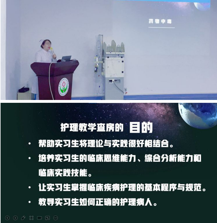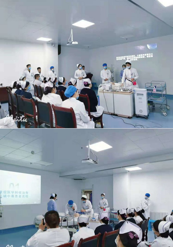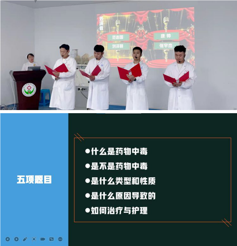 护士长韩莲应用PPT和视频形式与大家共同学习“药物中毒”的相关知识。
