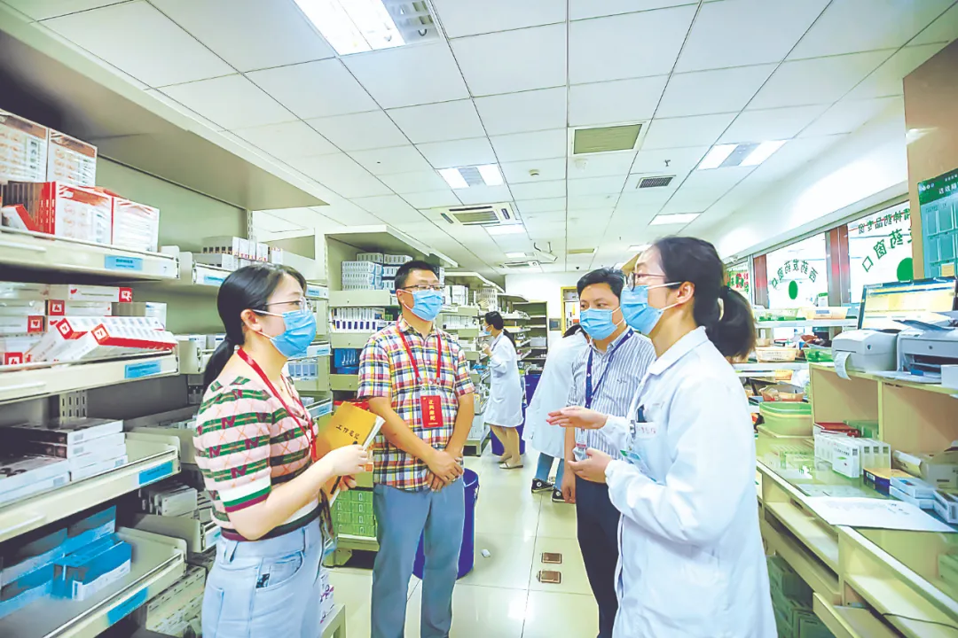 浙江省淳安县纪委监委强化医药采购方面的监督力度,通过防统方管理系统、核查进销清单、实地走访等多种方式严查药品采购中的不正之风和腐败问题。图为该县纪检监察干部到淳安县第一人民医院进行监督检查,在药房走访了解医院药品采购、管理、统方、销售等情况。毛勇锋 摄