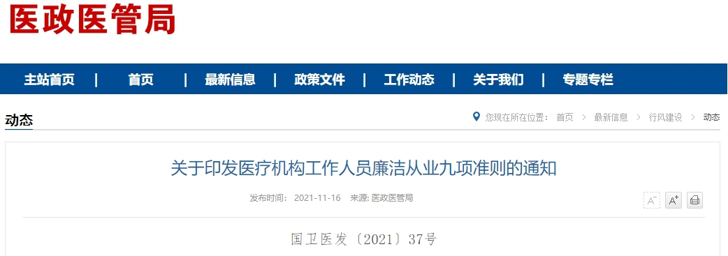 一、合法按劳取酬,不接受商业提成。依法依规按劳取酬。严禁利用执业之便开单提成;严禁以商业目的进行统方;除就诊医院所在医联体的其他医疗机构,和被纳入医保“双通道”管理的定点零售药店外,严禁安排患者到其他指定地点购买医药耗材等产品;严禁向患者推销商品或服务并从中谋取私利;严禁接受互联网企业与开处方配药有关的费用。 二、严守诚信原则,不参与欺诈骗保。依法依规合理使用医疗保障基金,遵守医保协议管理,向医保患者告知提供的医药服务是否在医保规定的支付范围内。严禁诱导、协助他人冒名或者虚假就医、购药、提供虚假证明材料、串通他人虚开费用单据等手段骗取、套取医疗保障基金。 三、依据规范行医,不实施过度诊疗。严格执行各项规章制度,在诊疗活动中应当向患者说明病情、医疗措施。严禁以单纯增加医疗机构收入或谋取私利为目的过度治疗和过度检查,给患者增加不必要的风险和费用负担。 四、遵守工作规程,不违规接受捐赠。依法依规接受捐赠。严禁医疗机构工作人员以个人名义,或者假借单位名义接受利益相关者的捐赠资助,并据此区别对待患者。 五、恪守保密准则,不泄露患者隐私。确保患者院内信息安全。严禁违规收集、使用、加工、传输、透露、买卖患者在医疗机构内所提供的个人资料、产生的医疗信息。 六、服从诊疗需要,不牟利转介患者。客观公正合理地根据患者需要提供医学信息、运用医疗资源。除因需要在医联体内正常转诊外,严禁以谋取个人利益为目的,经由网上或线下途径介绍、引导患者到指定医疗机构就诊。 七、维护诊疗秩序,不破坏就医公平。坚持平等原则,共建公平就医环境。严禁利用号源、床源、紧缺药品耗材等医疗资源或者检查、手术等诊疗安排收受好处、损公肥私。 八、共建和谐关系,不收受患方“红包”。恪守医德、严格自律。严禁索取或者收受患者及其亲友的礼品、礼金、消费卡和有价证券、股权、其他金融产品等财物;严禁参加其安排、组织或者支付费用的宴请或者旅游、健身、娱乐等活动安排。 九、恪守交往底线,不收受企业回扣。遵纪守法、廉洁从业。严禁接受药品、医疗设备、医疗器械、医用卫生材料等医疗产品生产、经营企业或者经销人员以任何名义、形式给予的回扣;严禁参加其安排、组织或者支付费用的宴请或者旅游、健身、娱乐等活动安排。