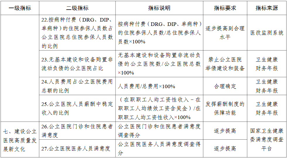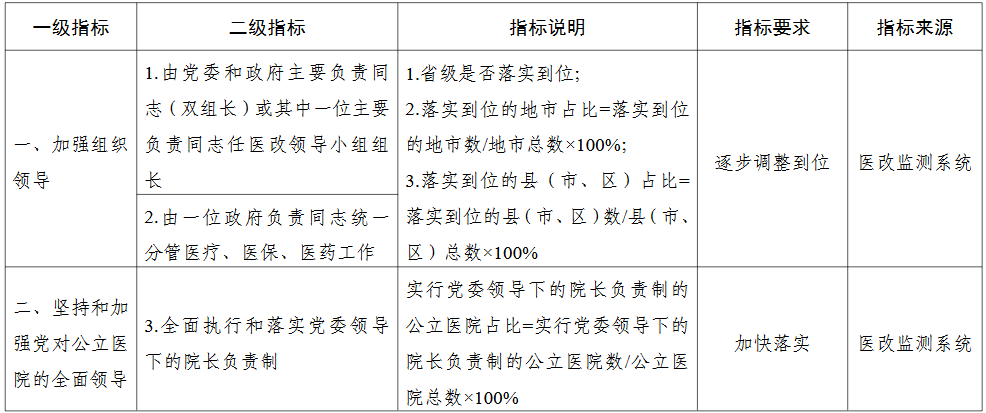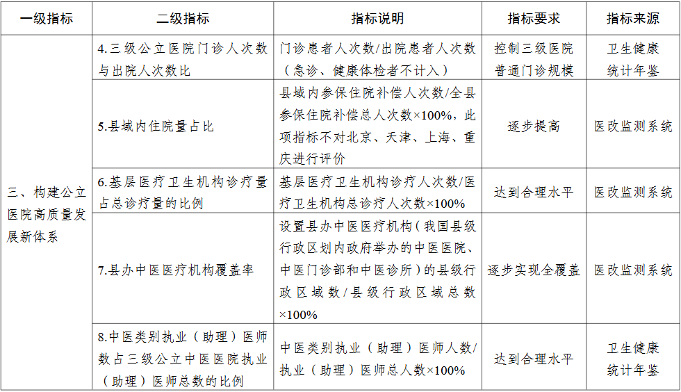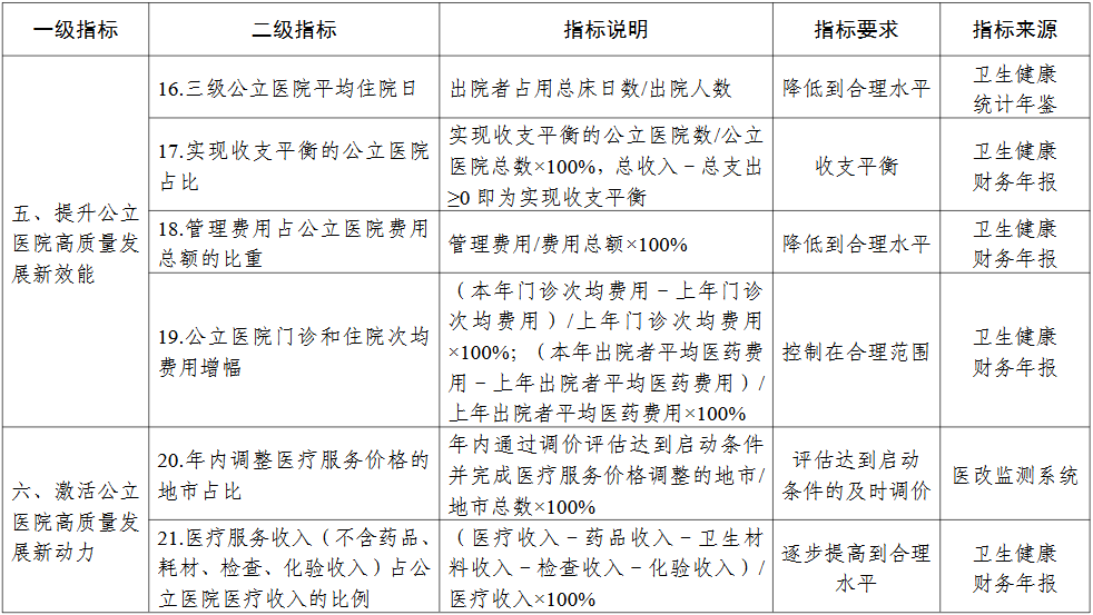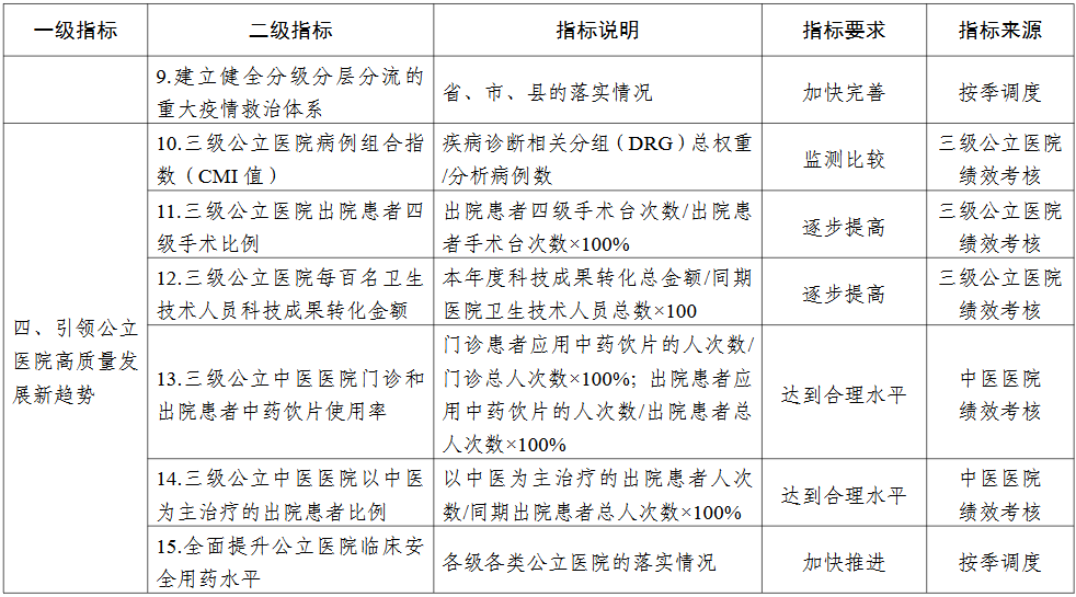 各省(区、市)推进公立医院高质量发展评价指标(试行)