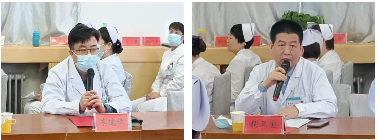 汇报结束后,分别邀请分管内科系朱建斌副院长、分管外科系张卫国副院长对护士长述职进行点评。张卫国副院长表示各位护士长汇报内容简洁精彩、有针对性,他指出护士长的工作风格会决定科室护理工作的温度,希望护理人员能够注重细节管理、加强护理安全、创新护理模式,为患者带来人性化、高质量的护理服务。朱建斌副院长认为近年来护理任务急速增长,各科室护理人员在拓展护理业务的同时,还要承担疫情防控工作,他对过去一年的护理工作高度评价。他也希望各科室护士长能够做好准备、转变思路,寻找新的工作点和创新点。