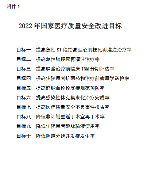 2022年国家医疗质量安全改进目标