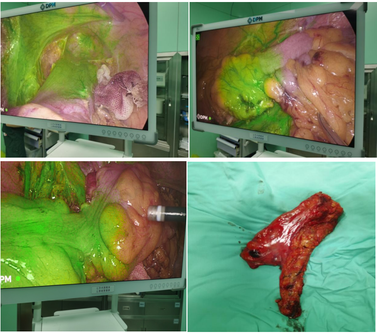 近年很多医院都将ICG荧光技术投入到消化道外科临床应用中,我国约80%的大肠癌手术用腹腔镜手术完成。ICG荧光是一项能够在广阔范围即时观察血流分布情况的特别方法。在结直肠癌手术时,用荧光观察切除部位的血流,精准判断切除部位。