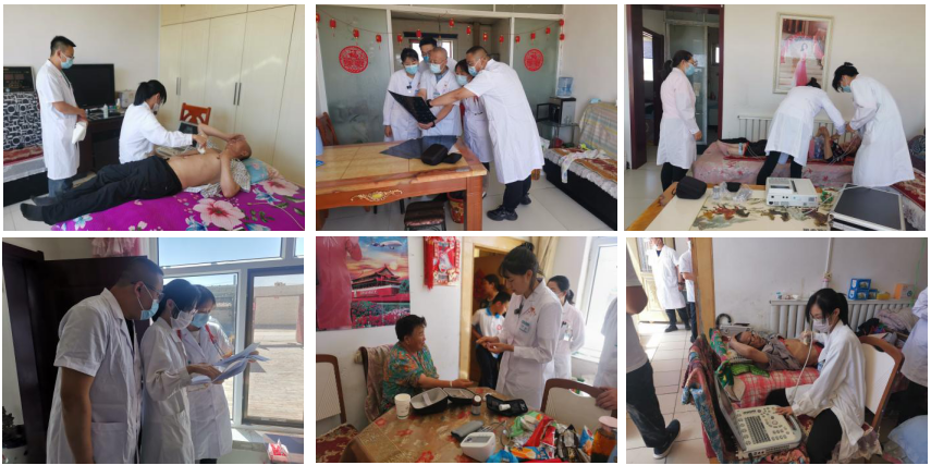 此次慰问义诊,结合各建档立卡户过去四年的义诊材料,进行了新的完善,支部党员为每一位家庭成员均进行了超声、心电图、血压、血糖的测量,肿瘤科医生也对肿瘤患者张大爷进行了详细问诊,同时对他们过去一年的就医、患病情况进行了了解,为他们介绍了近期国内疫情形式的严峻性,了解大家疫苗接种的相关情况并强调了疫情防控的重要性。