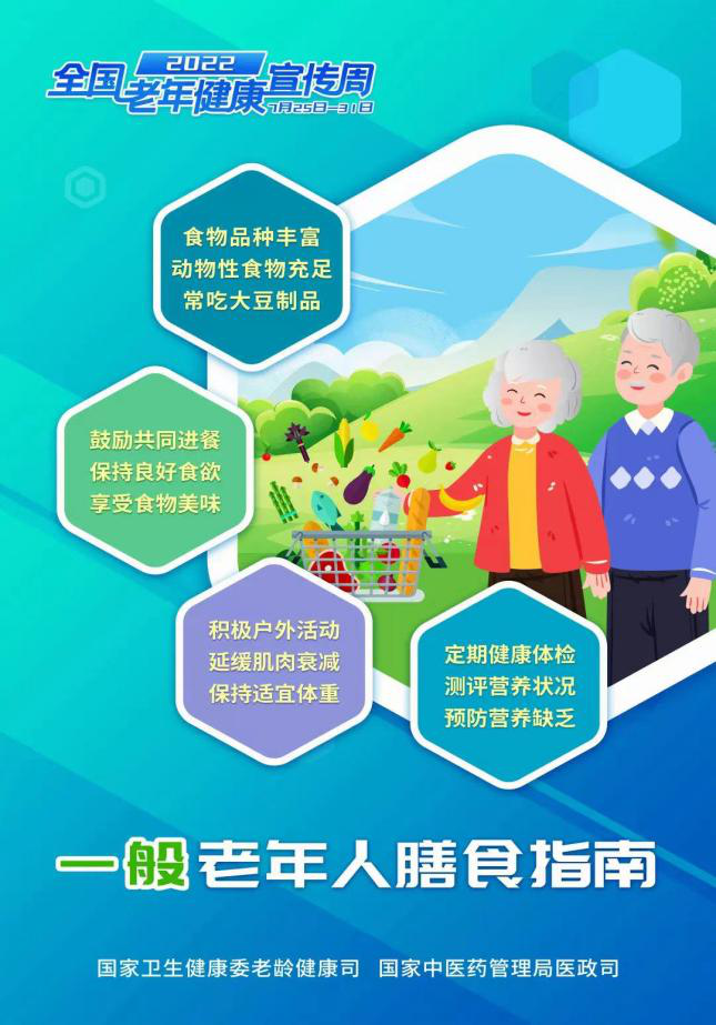 2022年7月25-31日是第4个全国老年健康宣传周。今年的宣传主题是“改善老年营养,促进老年健康”。