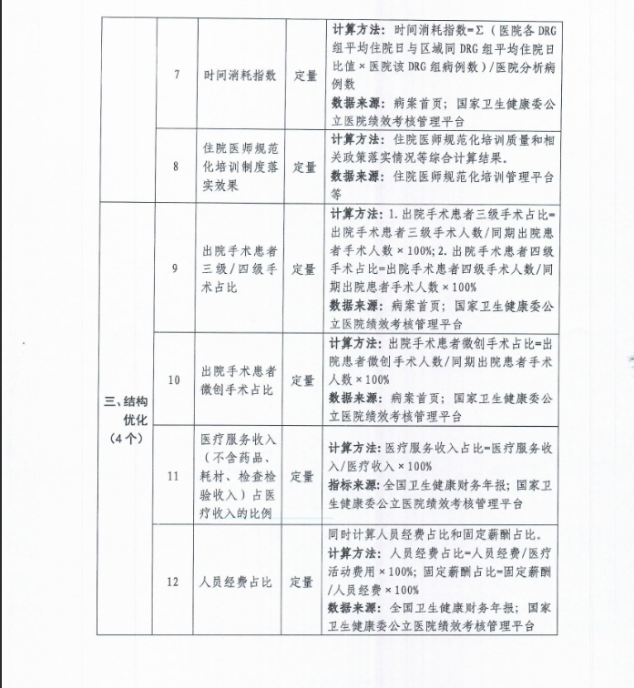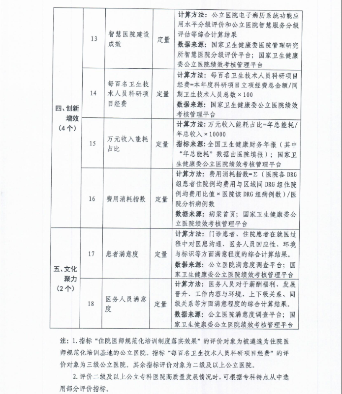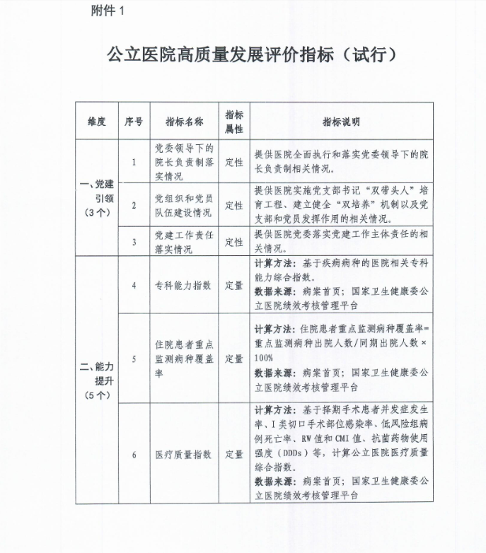 公立医院高质量发展评价指标