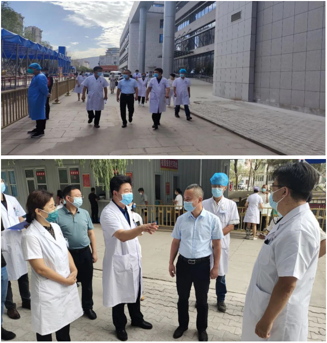 8月15日,乌海市副市长郝喜红、市委副秘书长党建华、市卫健委副主任张红霞等领导一行深入我院调研核酸检测能力、核酸采样能力、定点医疗救治及基础建设情况。我院院党委书记周兆海、院长朱建斌等班子成员陪同调研。