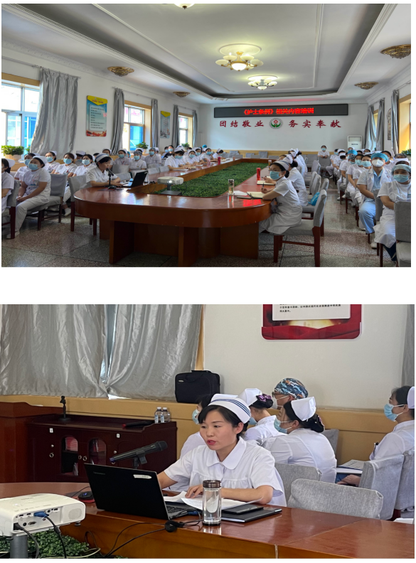 为了保障患者安全,持续改进医院护理服务质量,加强医院内涵建设,以人为本,不断提高医院护理管理水平和护理服务效率。按照护理部培训安排,2023年6月2日15:30由护理部副主任对各科室护士长,N0-N2层级护士及规培期进行了《护士条例》相关内容的培训。