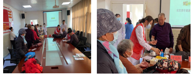 当出现以下信号提示可能是肾脏出了问题 1.水肿:肾脏病患者可能会出现水肿 ,通常最先出现在眼睑、足踝及下肢 ,严重时可能累及全身 2.尿量改变:患者可能会尿量增多或减少,甚至出现无尿 3.尿液性质改变:尿液可能浑浊 , 出现泡沫尿或血尿 4.腰痛:肾脏病患者可能会出现腰痛 ,这是因为肾脏肿胀或尿液在肾脏中积聚 5.高血压:肾脏病患者可能会出现高血压 S这是由于肾脏不能正常排泄钠和水 还有一些非特异性改变 ,比如R乏力、食欲减退、恶心、周身骚痒等症状 肾脏病的预防及治疗: 1.控制危险因素:如控制高血压和糖尿病 S减少盐和糖的摄入 S戒烟限酒等 2.定期检查:对于有肾脏病家族史、糖尿病、高血压等疾病的人 S应定期进行肾功能检查 3.合理饮食:避免暴饮暴食 S酒后浓茶 S保持低盐、低脂、低糖 、高纤维的饮食习惯 S增加 蔬菜、水果的摄入 4.避免滥用药物:避免长期或大量使用可能对肾脏有害的药物 5.治疗与肾脏病相关的疾病:如控制好糖尿病和高血压等与肾脏病相关的疾病 S有助于预防 肾脏病的发生和发展。 6.积极治疗肾脏病:一旦确诊为肾脏病 ,应积极配合医生进行治疗 ,包括药物治疗、透析治 疗等 ,同时保持良好的心态和生活习惯 ,也有助于疾病的康复。 科普后崔争光副主任医师和刘晓燕副主任医师为居民们解答了关于肾脏相关的医学问题。 药事办药师徐飞为居民解答用药问题 ,避免滥用药物加重对肾脏的危害。 杜海燕护士长带领护士李楠、郑盼盼为居民们测量血糖、血压 S并指导正确留取尿常规 S发 放宣传手册及小礼品。
