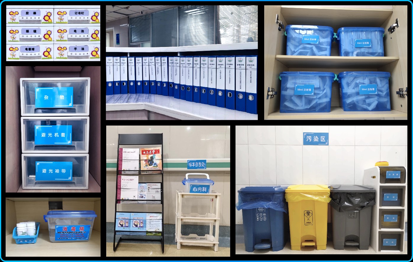 物品分类:对病区药品、器械、耗材等实行“必要与非必要”分类,淘汰冗余物品30余件,腾出空间20%,工作区域一目了然。