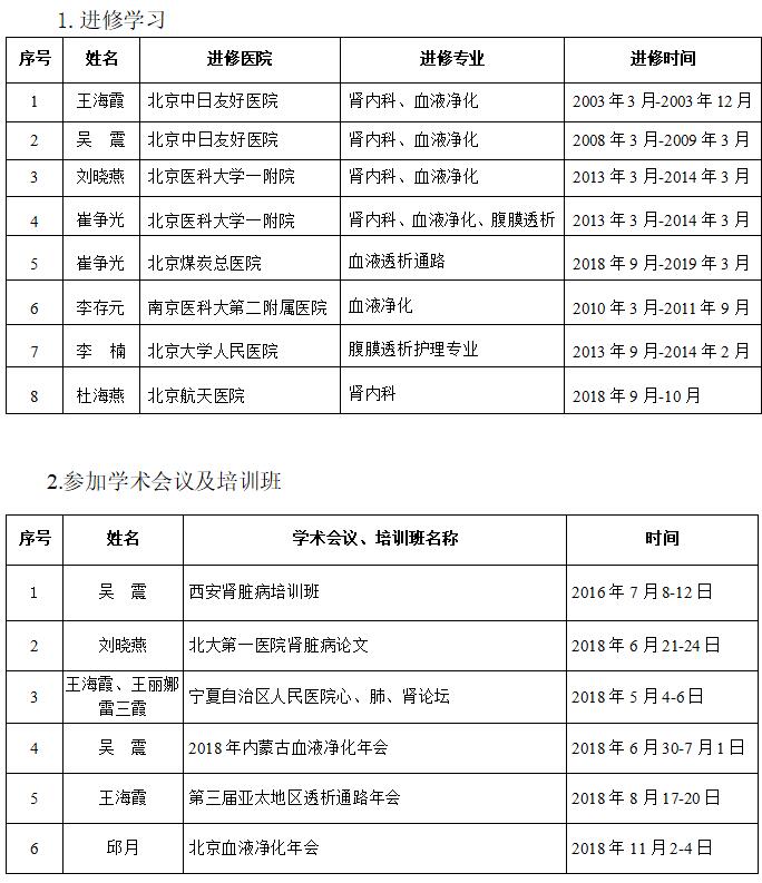 乌海市人民医院肾内科于2008年独立建科,经过数10年的逐步发展,专业技术水平不断提升,现已形成集肾脏病诊疗、血液净化治疗、腹膜透析治疗、危急重症抢救为一体的诊疗专科,并拥有一批潜心学术、献身医学、技术力量雄厚,具有丰富临床实践经验的专科医护骨干,现有医护人员28名,医生7名,其中主任医师1名、副主任医师1名、主治医师4名、住院医师1名,护理人员21名,其中副主任护师2名、主管护师7名。