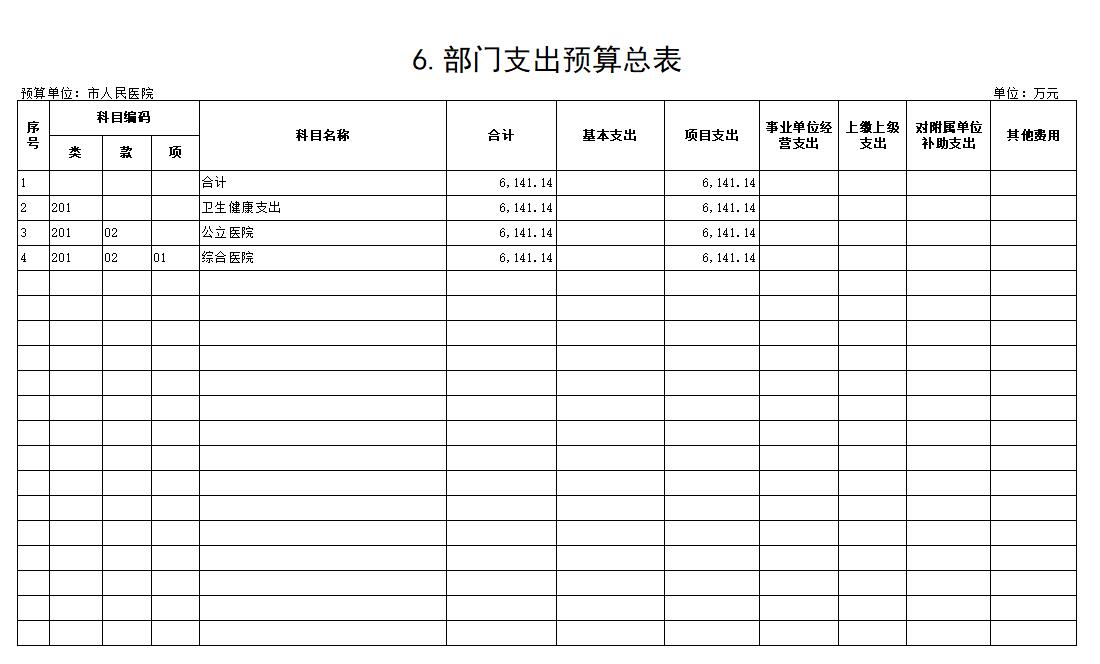 6.部门支出预算总表