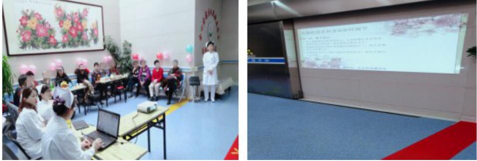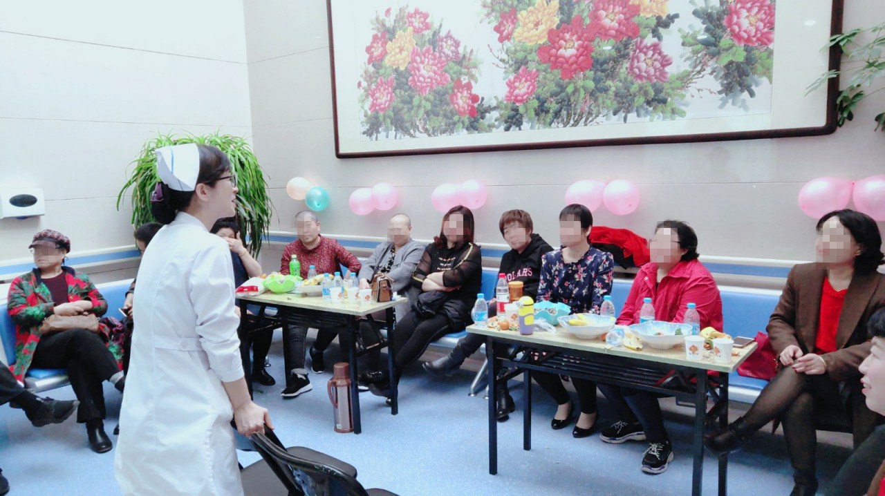 首先由肿瘤科张玉超主任代表全体医护人员提出感谢,感谢患者及家属对护理工作的理解和支持能够积极参与此次会议,同时鼓励患者积极向上的态度面对生活,正面接受疾病,勇敢抗癌。接着张桂园护士以PPT的形式详细的给大家讲了乳腺健康知识及乳腺癌患者饮食的重要性,饮食之宜,饮食之忌,提高患者对合理饮食的认识,改变不良习惯,饮食合理,适当运动。贾海荣医生给大家介绍了乳腺纤维瘤,乳腺增生,乳腺自查方式及哺乳期女性如何护理乳房。