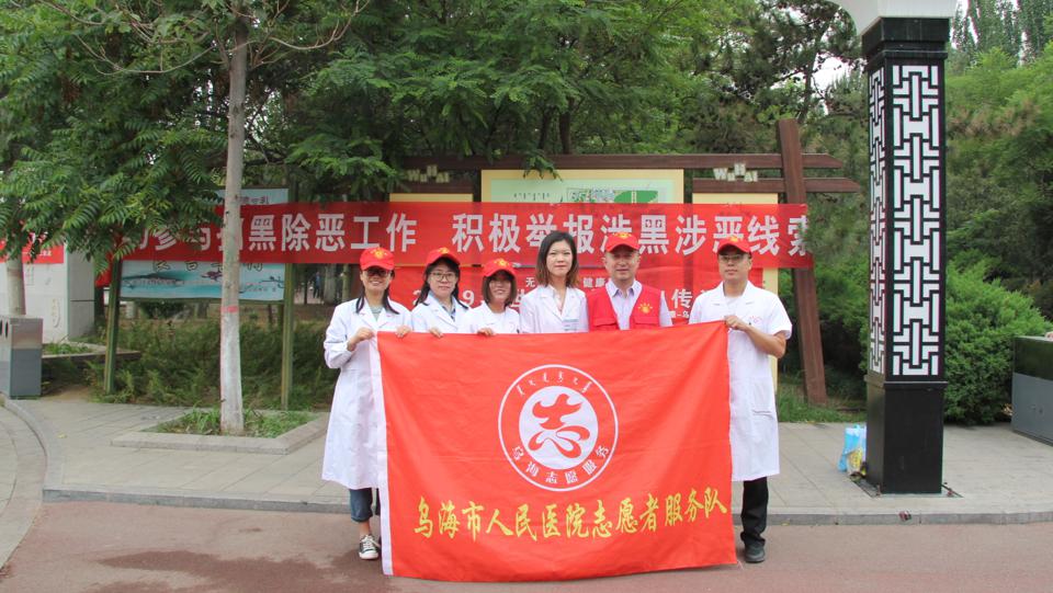 为了营造和谐平安的社会氛围,共同保障人民群众安居乐业。乌海市人民医院5月31日组织医务志愿者在市人民医院北门广场开展了“重拳出击“扫黑除恶”依法严惩违法犯罪”扫黑除恶专项宣传活动。