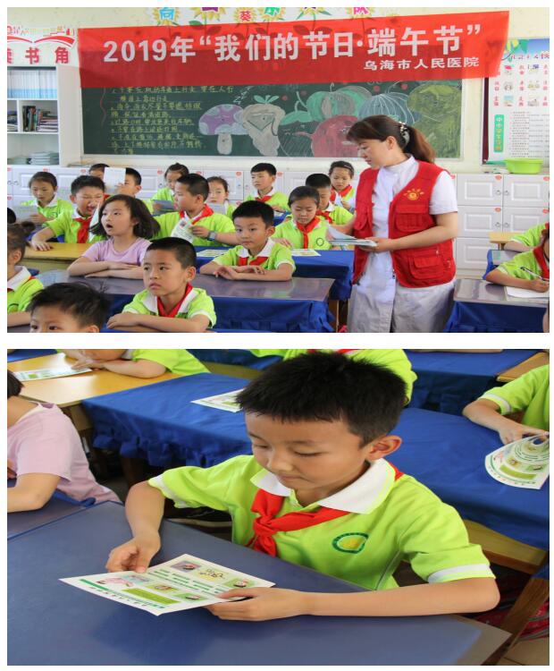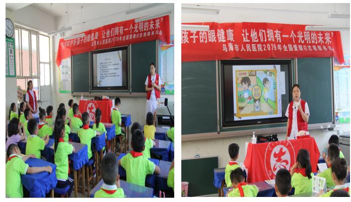 6月6日是第24个全国爱眼日,6月4日上午乌海市人民医院眼科护士长魏静、主治医师吕洁及文明办宣传员范媛春共同来到乌海市第五小学,为一年级2班的小学生讲解近视防控知识讲座,并为他们带去端午节问候。