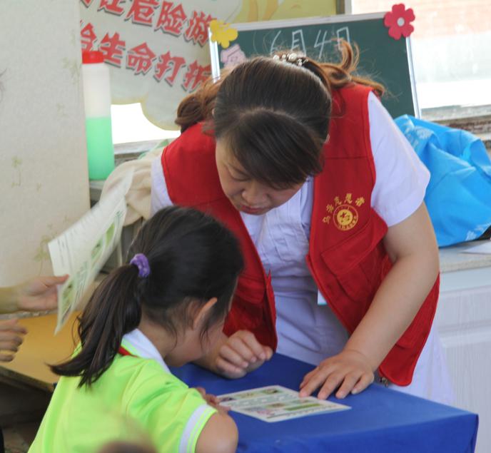 护士长魏静为小朋友们发放了爱眼护眼知识折页,结合图画为部分学生做了细致认真的解读。