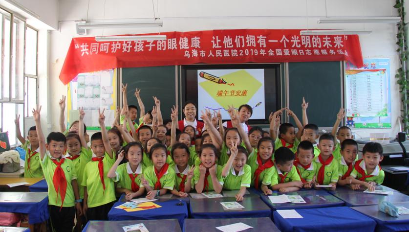 通过此次宣教活动,让学生们知道了爱护眼睛的重要性,对普及少年儿童科学用眼知识、提少年儿童眼健康水平起到了积极的促进作用。最后乌海市人民医院眼科志愿者们同全班同学们共同合影留念,并再次祝全体小朋友们端午节快乐。