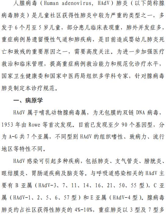 儿童腺病毒肺炎诊疗规范 (2019 年版)