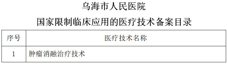 乌海市人民医院内蒙古自治区限制类医疗技术备案目录