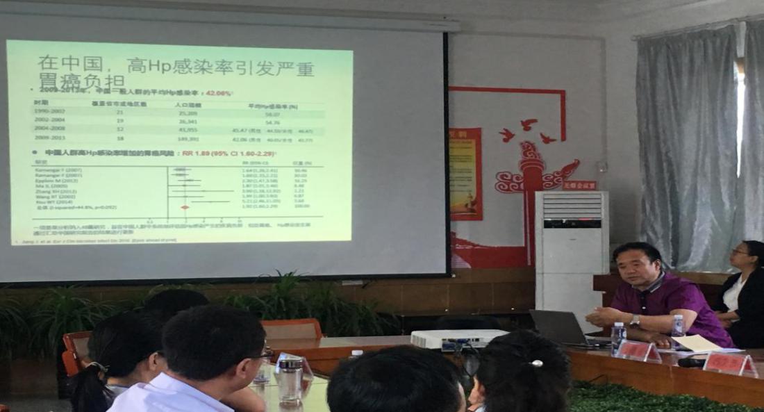 本次研讨会由乌海市人民医院消化内科主任朱建斌主持,研讨会分为两大专题,首先由北京协和医院消化科伍东升教授讲解GERD合并功能性胃肠病,内蒙古医科大学附属医院消化内科主任苏秉忠教授针对《HP感染与胃癌的相关性以及胃癌预防管理》精彩讲座,让大家对功能性胃肠病和幽门螺旋杆菌、早癌等有了更新的认识。急诊医师孙双林从急诊医师角度看问题,为大家分享了《急诊预防应激性黏膜病变合并上消化道出血》专题,最后由消化内科副主任医师杜永哲和大家一起进行病例讨论,引起了与会专家学者浓厚的兴趣,大家纷纷就早癌提出了相关的学术问题,苏教授、伍教授和朱建斌主任与大家作了一一互动研讨,使大家对早癌筛查治疗的重要性、必要性有了一个更深刻的认识。
