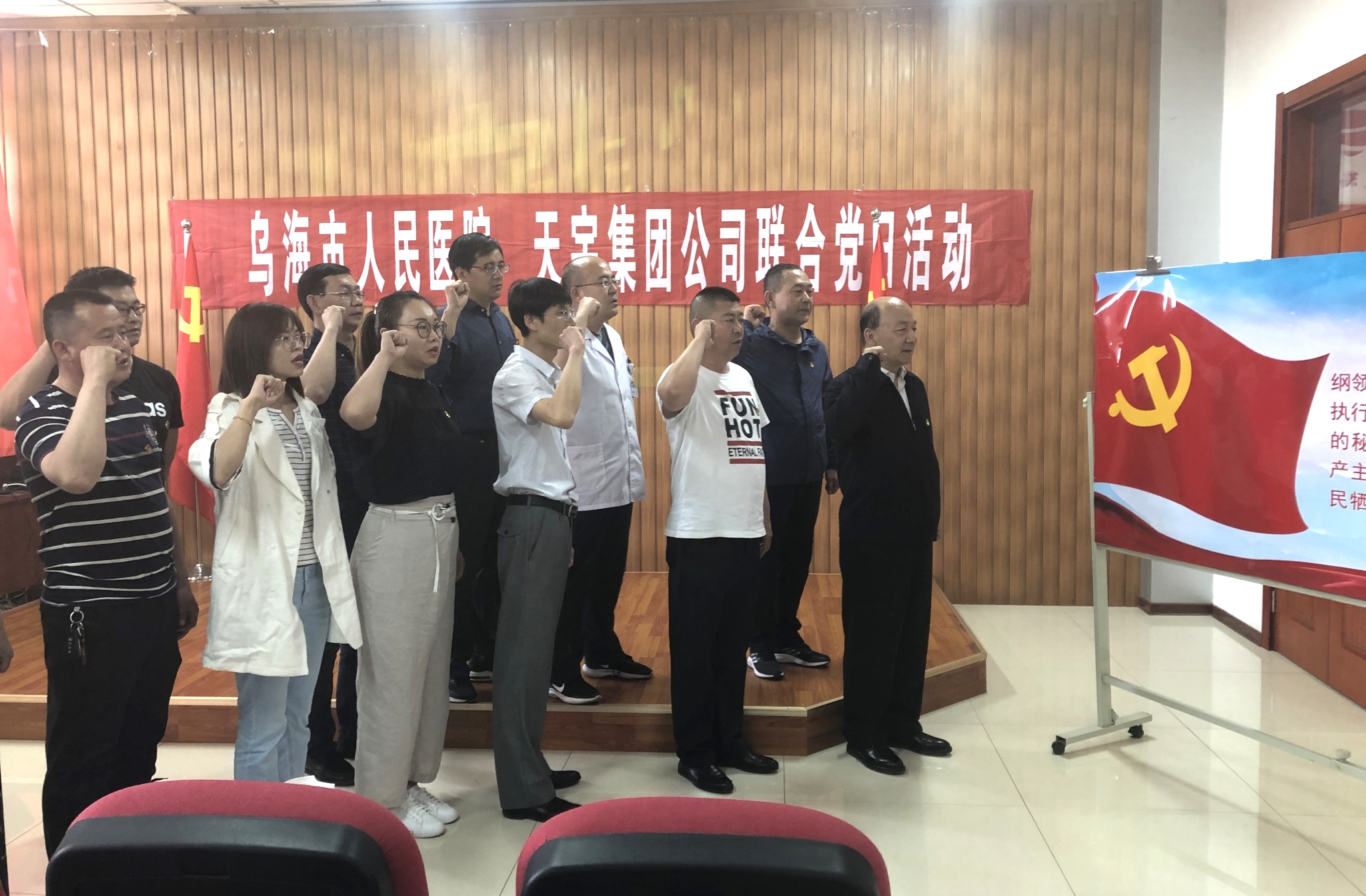 学习交流、关爱健康、互帮互进乌海市人民医院、乌海市天宇高岭土高新科技有限公司联合主题党日