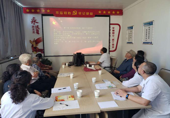 老党员与年轻党员们一同完成党日活动的规定动作。这些为乌海市医疗卫生事业做出贡献的老党员中有近90岁高龄的,但唱国歌和重温入党誓词时依旧声音洪亮,铿锵有力。会上老党员们分享了离退休党支部的特色环节“身边的正能量”,让年轻党员们深深地体会到他们对党的事业坚定和忠诚,同时感受到了老党员们浓浓的爱国情怀,满满的正能量。