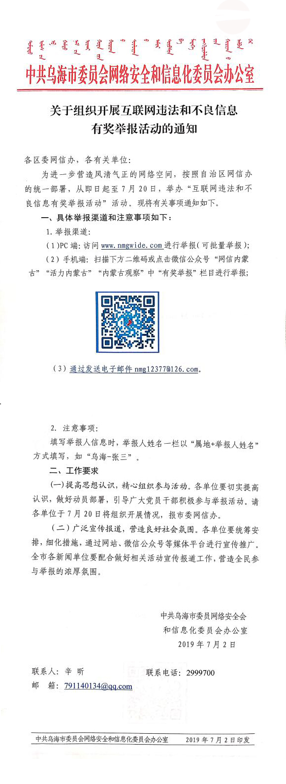 关于组织开展互联网违法和不良信息有奖举报的活动