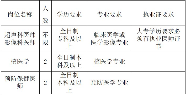因医院业务发展需要,现面向社会公开招聘急需紧缺专业技术人员数名,具体公告如下: