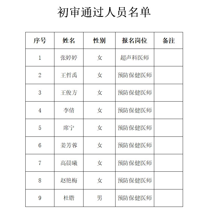 2019年乌海市人民医院公开招聘急需紧急专业技术人员初审通过人员名单