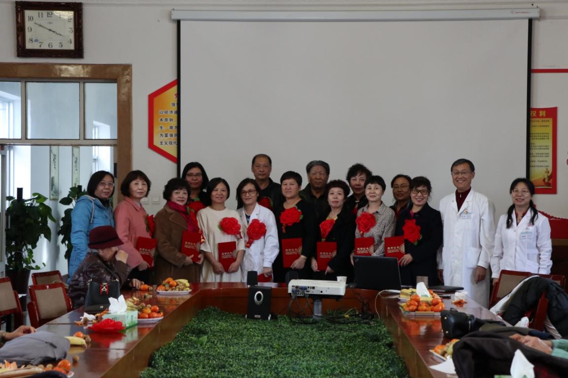 座谈会开始,首先为大家播放了《以人民的名义,做人民的名医》医院宣传纪录片。之后,武喜华主席为2019年退休的二十多位同志佩戴了光荣花,韩旭副院长为他们颁发了退休荣誉证书。