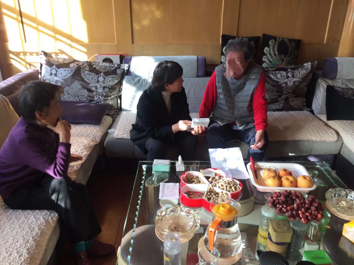 “大爷,您最近眼睛感觉怎么样啊?有没有不舒服?”乌海市人民医院眼科护士长魏静正亲切的问候着老人。家住乌海裕和苑小区的余大爷是此次眼科入户走访的第一家。余大爷现年76岁,因双眼看不清东西来我院就诊。诊断为双眼白内障13日入院治疗,由眼科张卫国主任为其做了双眼白内障手术,术后恢复良好,19日便出院回家继续疗养。现同老伴儿、儿子、孙子一起生活。考虑到自己和妻子平时工作忙,母亲又有些痴傻,儿子还在上学怕老父亲无人照料,便聘请保姆予以照顾。