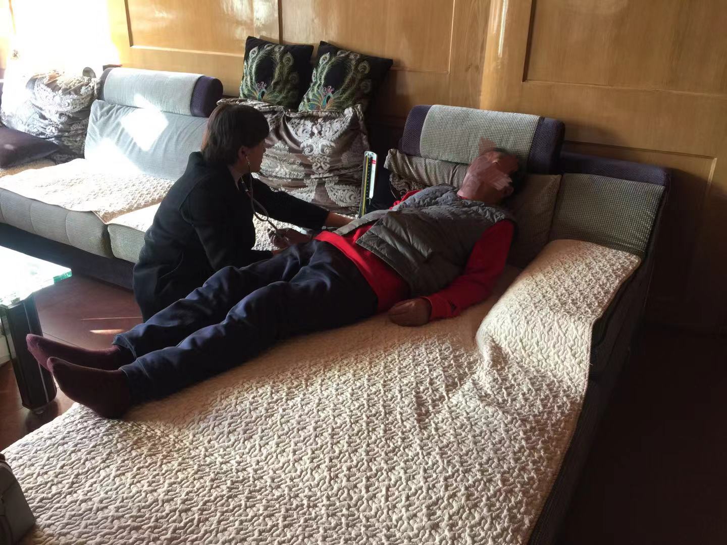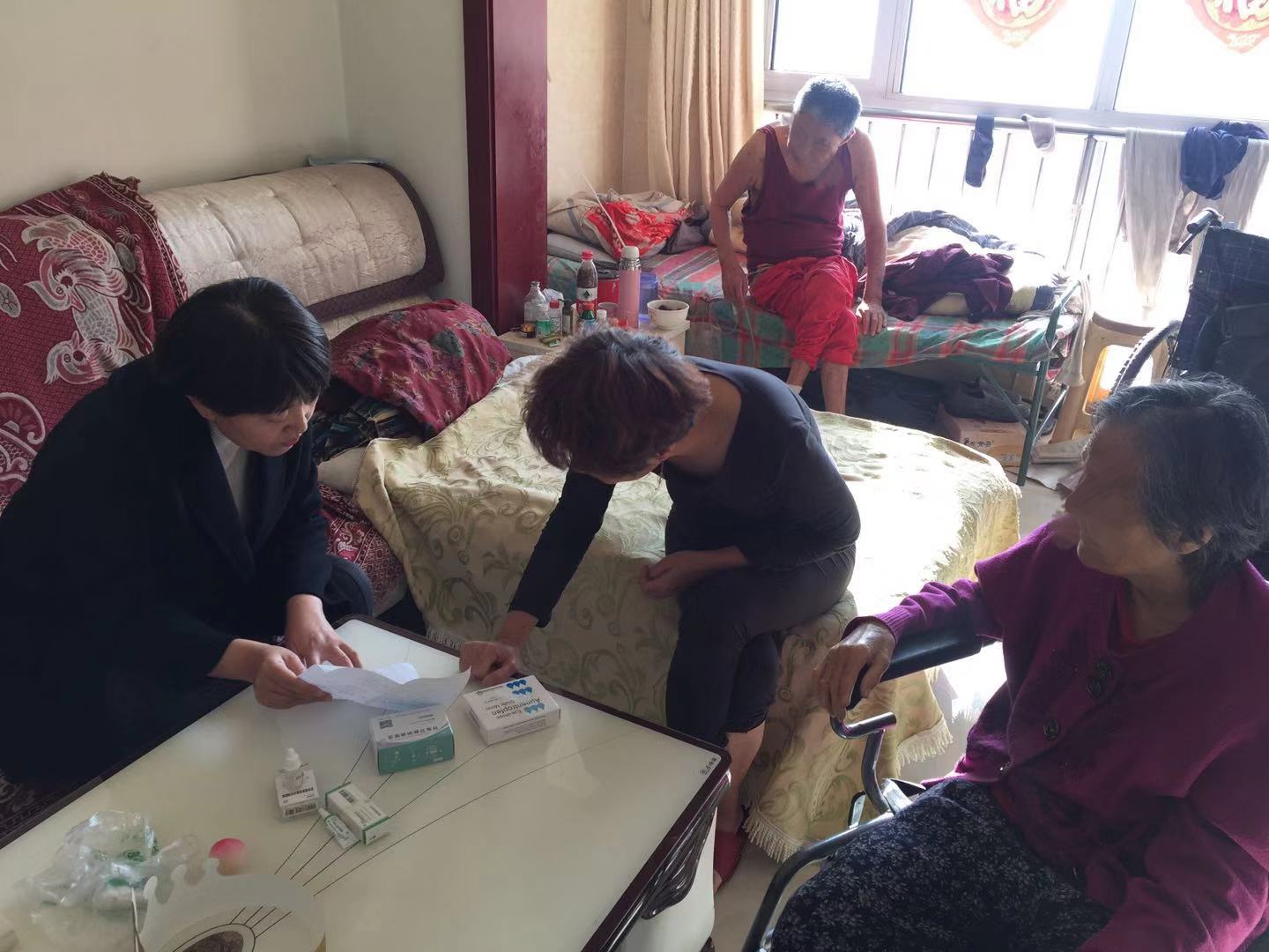 魏静护士长为大娘及家里人测量了血压,为大娘讲解了术后的基本护理和用药须知。我院医疗志愿者看到大娘家陈设有些许杂乱,问询之下才了解三个女儿虽说轮流照顾但碍于工作原因很少脱身。了解到任大娘家情况后,我院医疗志愿者主动为任大娘家打扫卫生,又对任大娘及家人科普了“鼠疫”的相关知识。对于我院志愿者的服务任大娘感动不已,握住志愿者的手久久不愿松开。