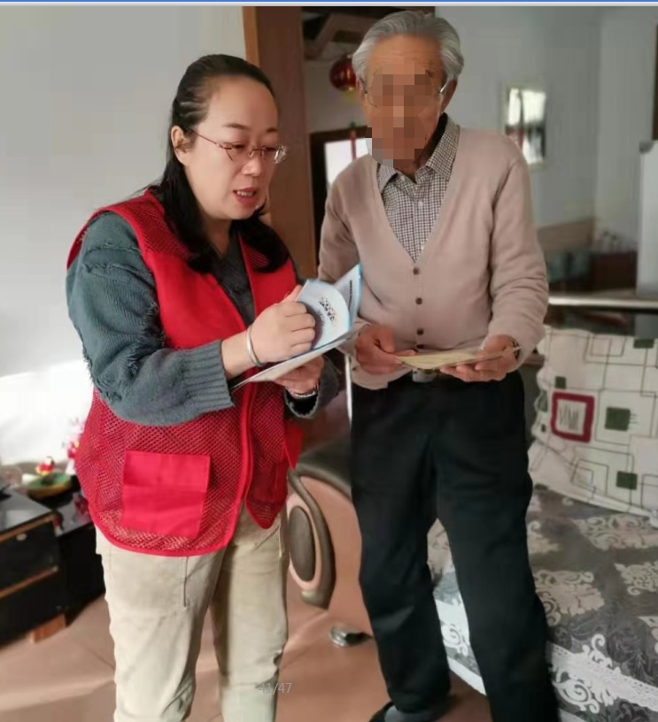 看到刘大爷正在站着写字,陈敏忙上前扶老人坐下,问询老人站了多长时间,随后又掏出血压计为老人测量血压。看到老人血压正常后才舒了口气。刘大爷呵呵乐着,说他一切都好,自从做完手术他觉得行动方便多了,以前不敢弯腰不敢运动,现在做起来一点儿都不碍事儿。陈敏为老人术后康复表示祝贺,但她也提醒老人术后刀口需要时间恢复,在伤口没有完全恢复之前尽量不要过量运动,久坐久站。洗澡、拎东西都需要注意,不能过多负重。饮食上要营养均衡,荤素搭配、避免感冒,增强一下抵抗力。多吃一些粗纤维的东西,促进大便通畅。同时针对刘大爷高血压,陈敏告诉老人术后应该怎么吃降压药。同时向老人宣讲了“鼠疫”相关知识。告诫老人做好相关防控工作。