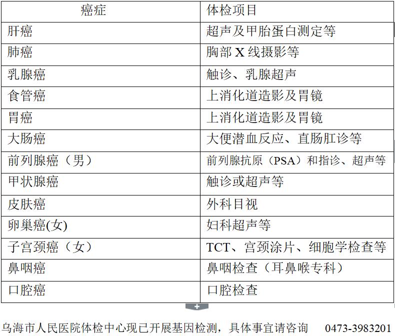 癌症筛查建议体检选项