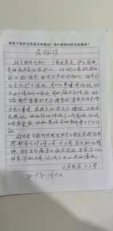 神经内科收到患者来信