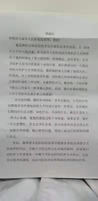神经内科收到患者来信