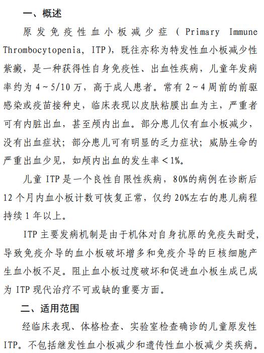儿童原发性免疫性血小板减少症诊疗规范