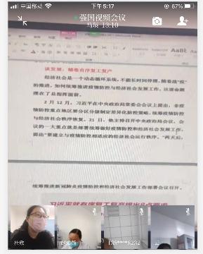 2月24日下午,市人民医院机关一党支部运用“学习强国”平台,以视频会议的方式组织了一场 “践行初心使命、全力战胜疫情”的线上主题党日活动。完成规定动作后,与会党员重点学习了习近平在统筹推进新冠肺炎疫情防控和经济社会发展工作部署会议上讲话《毫不放松抓紧抓实抓细防控工作,统筹做好经济社会发展各项工作》以及上级关于疫情防控最新部署要求。同时还学习了中央《关于全面落实进一步保护关心爱护医务人员若干措施的通知》。