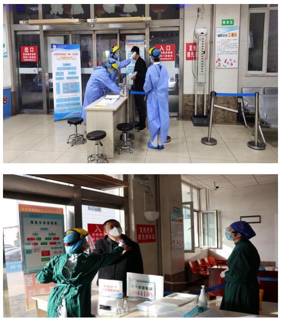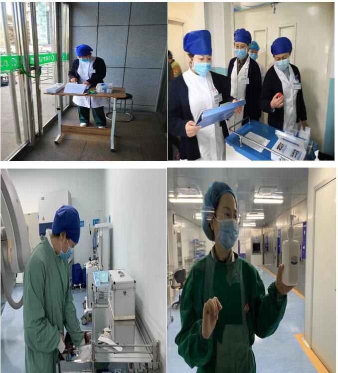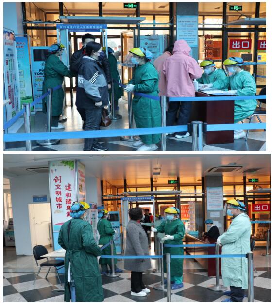 护理部从1月22日发热门诊搬家、流程改造、防护用品、人员和急救物品调配、感控知识的培训...。2月3日接手规范门诊预检分诊工作,护理部对人员分管工作重新进行了分工,主任、副主任和三个科护士长各自分工负责新冠肺炎的相关工作与部门,抽调科室护士长参加预检分诊工作(把大门),边工作边探索。为了避免就诊人员聚集,改造患者双通道、增加分诊人员、增加测温设备,尽快疏散患者,防止交叉感染。