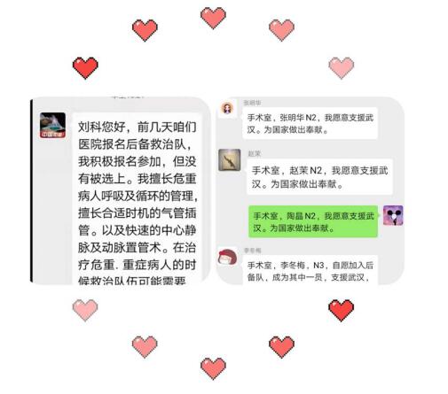 在接到医院组建抗疫预备队及驰援武汉医疗队的通知后,李晓波、武瑞泉、赵茉、郝美玲和我就在第一时间请求参战。印象最深的是麻醉医生武瑞泉,他的初次申请没有被批准,之后再次提出申请,怕医院不了解麻醉医生的专业专长,附上了这样一段话:“领导您好,前几天咱们医院报名后备救治队,我积极报名参加,但没有被选上。我擅长危重病人呼吸及循环的管理,擅长合适时机的气管插管,以及快速的中心静脉及动脉置管术。在治疗危重、重症病人时可能需要我,希望您再考虑一下让我加入。”字里行间,情真意切,要表达的意思就是如果有需要,我完全可以胜任!其他工作人员也表示,只要需要,我们都可以上!曾旭德、陈晋龙、陶晶、田芳、张明华…….发热门诊、预检分诊、垃圾处理处,到处都是我们的战场。