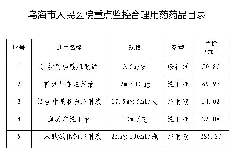 乌海市人民医院重点监控合理用药药品目录公示