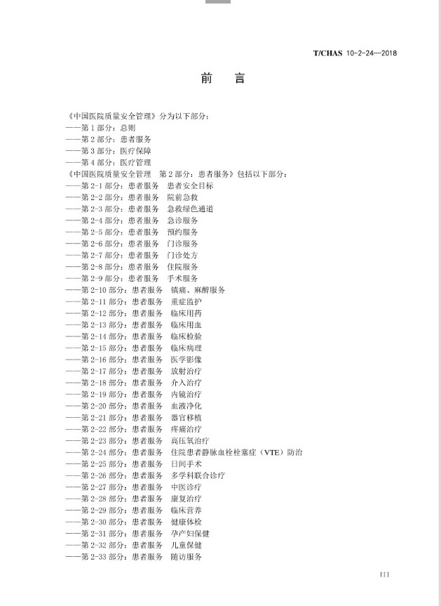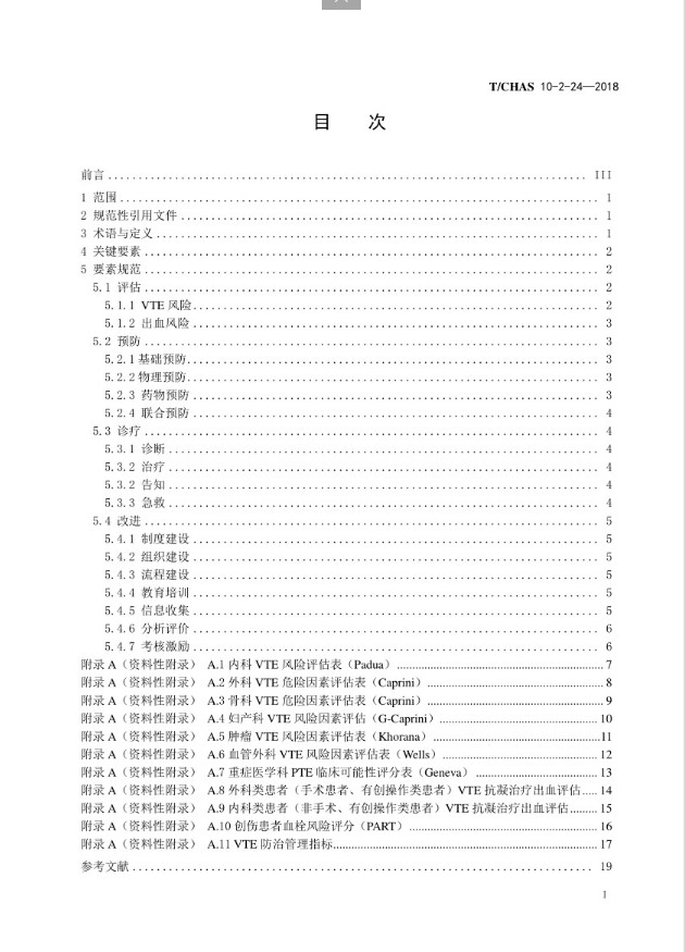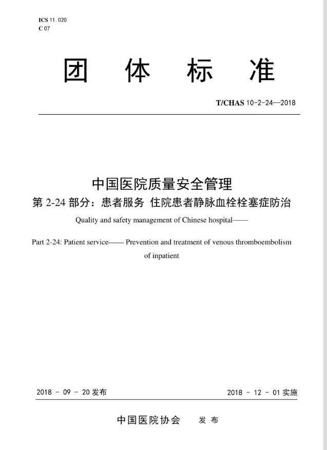 中国医院质量管理团体标准---患者服务、住院患者静脉血栓栓塞症防治