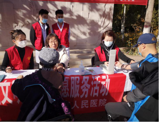 义诊活动从9点持续到11点,我院干部保健科的医生、护士免费为老人们测量血压,耐心地听老人们讲述自己的病症,解答了老人们在健康方面的诸多疑问,重点指导老人合理饮食、科学锻炼、健康养生,活动现场气氛热烈,井然有序,温馨有爱。一上午的义诊志愿服务活动共接诊140余人次,发放健康资料200多份。