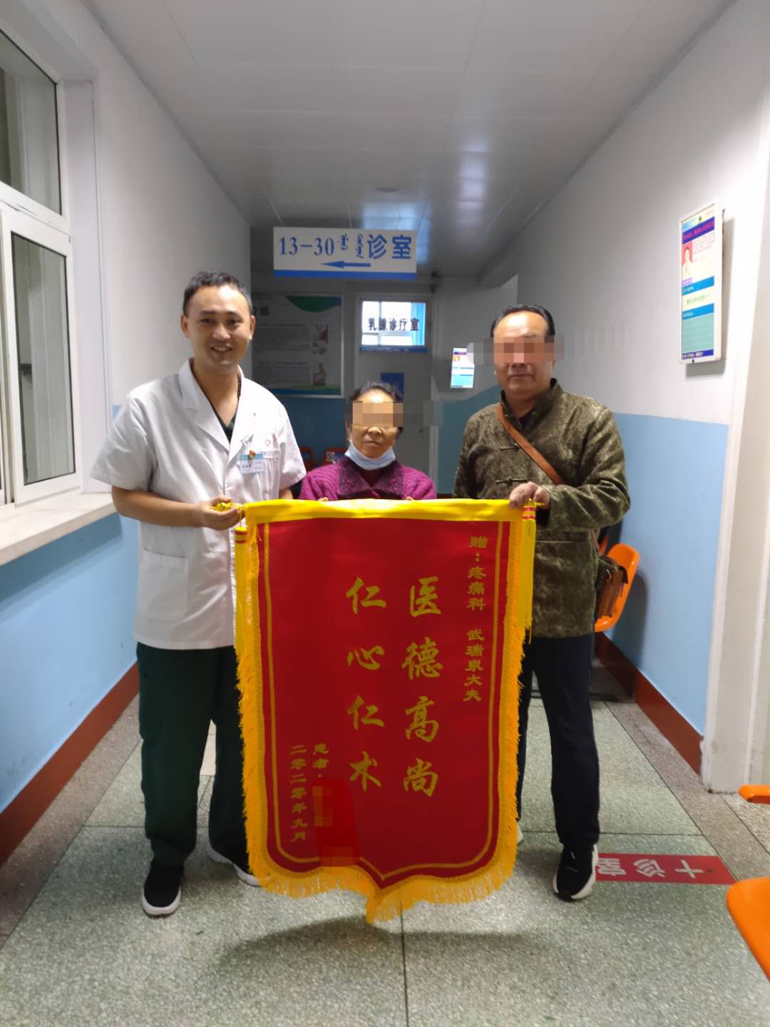 一位80多岁的老年女性反复出现左侧下肢放射性疼痛,影响正常生活。白天夜间不定时发作,甚至夜间连续发作导致无法入眠。服用各种止疼药物、针灸治疗等亦不能缓解,多方求医无果后,来到我院疼痛科接受治疗。青年主治医师武瑞泉经过仔细询问患者病史,结合患者的腰椎ct及核磁共振检查结果进行了认真的分析后,考虑患者患有“梨状肌综合征”俗称坐骨神经痛。在手术麻醉科白宏主任及郝美玲副主任的大力支持下武瑞泉医师为患者进行了触发点(MTrPs)的治疗。治疗结束后患者症状明显减轻,回家后发作次数明显减少,夜间也可入眠了,并停用了镇痛药物。经第二次治疗后,患者10余天未在出现下肢放射性疼痛。治疗6次后患者症状消失。对治疗效果非常满意的患者送来了锦旗表示感谢。