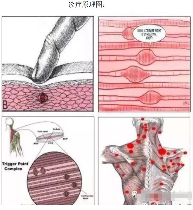 简单来说就像久未灌溉的土地会形成很多硬块,触发点就是肌肉纤维中的结节,是由于身体受凉、受累、感染、营养不良或者长时姿势不正确造成。“肌筋膜触发点治疗”就是打开这个结节,这种疗法操作虽然简单,但是往往扎几针就能有效解除疼痛,由于扎针时会产生肌肉跳动,所以也被称为“会跳舞的针”。